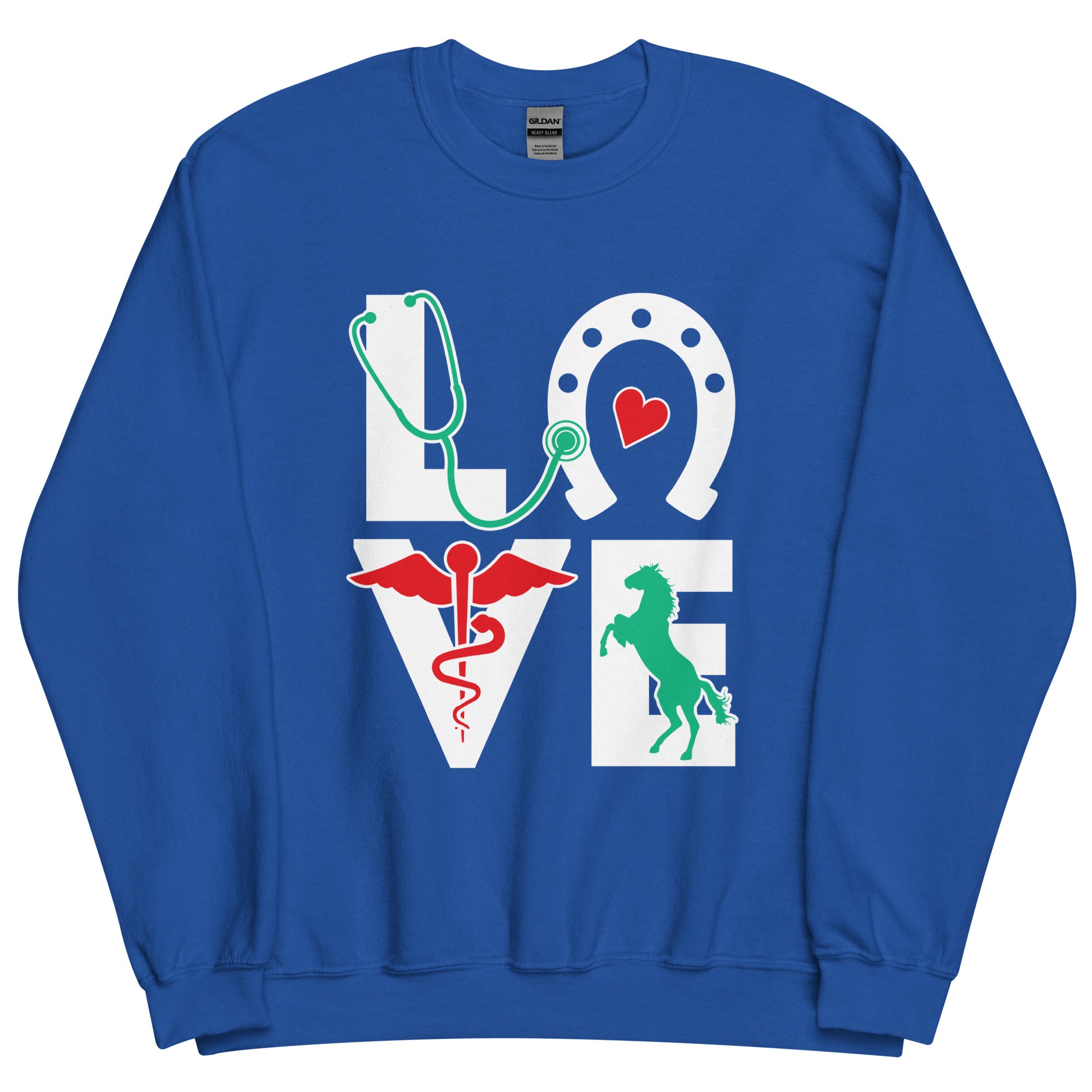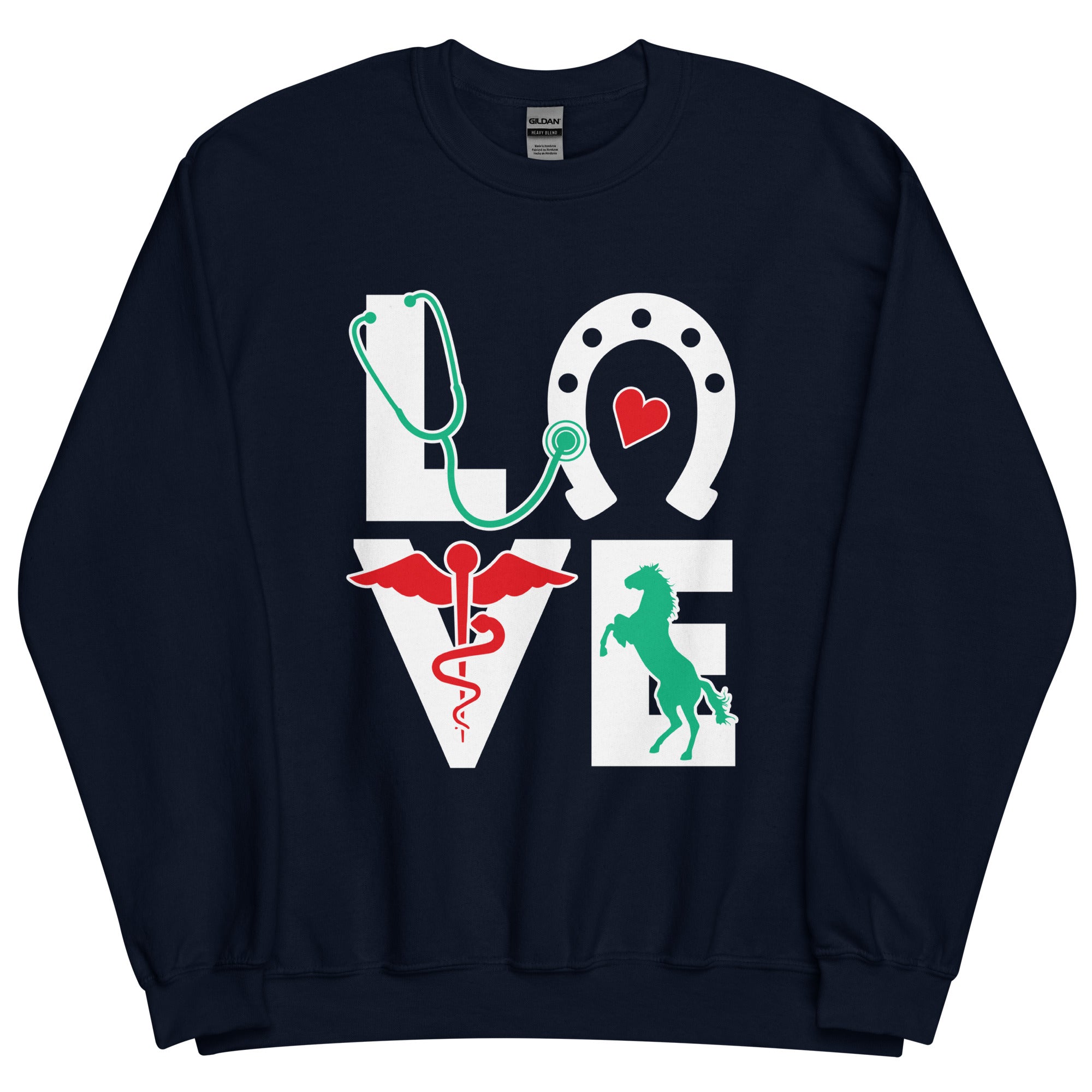 This Large Animal Vet crewneck sweatshirt is great for showing your passion. Wear this Equine Love Crewneck Sweatshirt proudly, entertain your friends and colleagues with some vet humor, or show how much you love animals. Perfect gift for your friends and colleagues. Great for employee appreciation day, Vet Tech Week, and World Veterinary Day for your Veterinary Staff. This will become your favorite piece to wear and a new conversation starter! Contact us and ask for bulk discounts or customization. Unique design for everyone in veterinary medicine who loves their profession! Apparel is the perfect gift idea for birthdays, Mother’s Day, Father’s Day, Christmas, or any other special occasion. Find other cool t-shirts or hoodies for veterinarians, vet techs, veterinary students, vet receptionists, veterinary nurses, veterinary assistants, and anyone involved in the veterinary profession! Please check our size chart and product description before you order. Treat yourself or give as a gift to someone special. Buy Now!